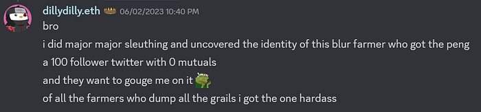 Genuine market participants interested in obtaining specific NFTs are unlikely to have the opportunity to buy them from Blur farmers, who continuously dump NFTs into other farmers using Blend. As a result, genuine buyers are sidelined, unable to engage in the market as they would prefer.