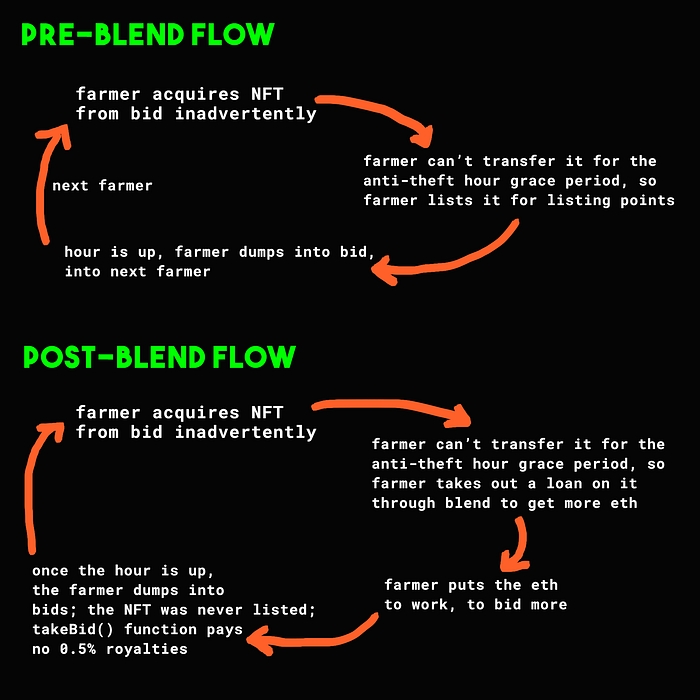 As farmers leverage Blend to shorten their NFT hold times and enhance their farming efficiency, it simultaneously magnifies the dichotomy between the two diverging markets — the farmers and the genuine NFT buyers.